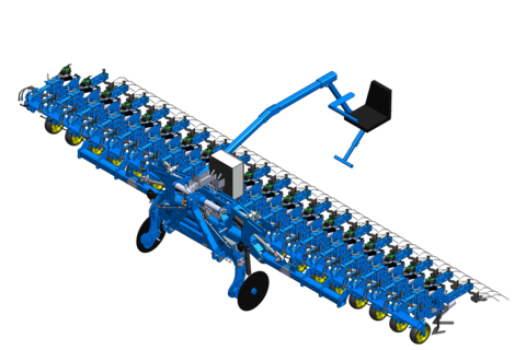 Relevage individualisé des paniers à 45° : Manuel ou automatique, avec maintien des roues de jauge au sol.